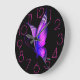 Purples, Pinks Butterfly on a Black Large Clock