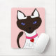 This mousepad is great for the cat lover in your life. The stylised Siamese cat on pink background is a Seal Point, white with brown face, ears, and tail, and wears a pink collar with a red heart tag that she calls her bling. This illustration was inspired by the sweet shelter kitty named Moira that I adopted when she was 17 years old and her owner had died. Customise it with your own cat's name, or your name, or other text. Look for other items with Moira's image on them in my store. The digital art on this mousepad is copyright © Kathi Shotwell and is only available through me.