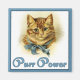Vintage design featuring an adorable brown tabby cat wearing a blue ribbon collar. This sweet kitten has text that says Purr Power.