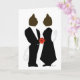 Cat couple in evening dress. The gallant tomcat offers his lady love a beautiful red rose. The purrfect card for cat lovers tying the knot or celebrating an anniversary occasion.