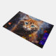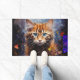 A doormat extending a warm and artistic welcome with the vibrant charm of a painterly impasto effect. At its centre, an enchanting orange kitty springs to life, boasting a fur adorned with deep, rich colours, and captivating azure blue eyes that seem to invite you in. The textured strokes swirl and sculpt its contours, offering a tactile masterpiece underfoot that transforms each entrance into a purr-fectly delightful experience.