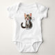 Featuring a cute cat image and a happy 'hehe' smile, this baby jersey bodysuit conveys the message that wearing it will make you feel good and grateful.