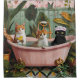 Transform your bathroom with this kitschy, maximalist design. Bursting with vibrant colours and playful details, this illustration of three whimsical cats in a charming cottagecore bath adds a unique and delightful touch to your decor. Perfect for creating a joyful and lively atmosphere!