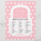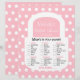 Looking for a purse bridal shower party game which is not like all the others? Well, this one is for you! This purse bridal shower game features an actual purse design as the game board. The purse has the words "What's in your purse?" on it and the bridal shower attendees can check off what is in your purse and add up the total points -- all inside the purse. The white purse appears on a pink and white polka dot background. You can even customise the design with the name of the bride and the bridal shower date. This is a fun twist to the purse bridal shower party game! Copyright henishouseofpaper