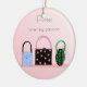 A cute holiday design for a handbag lover. A pink background featuring three purses in different styles and colours. Customise as desired.