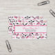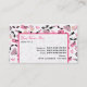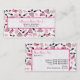 A business card featuring a design consisting of pink and black retro cat eye sunglasses, pink change purses with grey polka dots, pink clutch purses with black bow, pink lipsticks, pink gemstones, and bottle of perfume with pink atomizer. Personalise the text on front and back with your information.