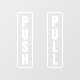 White transparent push and pull door sticker for enter and exit doors. Vertical / portrait orientation. Great for any business / shop / store / restaurant. Use for easily flow of customer traffic.