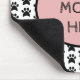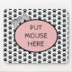 A mouse pad with a cat hiding and waiting for the mouse to be put down in the center where it says "PUT MOUSE HERE". In the background is a pattern of paws. Text, images and colors can all be changed. It is fully customizable.