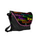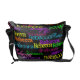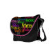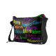 Add your name or word all over this awesome bright and colourful messenger book bag, with black background and neon coloured text in different fonts. A Stylish way to mark your property and show who's in charge! Great for a teen girl's birthday gift, for a college student or other fashionable girl who is "all about me". Chic and sassy, with your name personalised custom made for you!