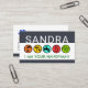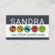 Your prestigious name at the top of the card blends in with the white layer underneath. Your name hovers over a set of handyman tools icon that can represent some of the work you offer e.g. the hand drill-measuring tape can represent home repairs-renovation, the brushes for painting-interior design. Their usage is left to your own interpretation.