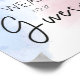 My thoughts on this product was excellent. Well printed in a gloss finishing and just the size l ordered. It arrived in good condition and am overall satisfied with the product. The printing turned out great. I was quite surprised with the finishing touch to the poster. The semi gloss was just right and a perfect size to display at the wedding.