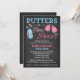 Cute putters and pom poms gender reveal party invitations. A unique design featuring a blue golf bag and clubs with pink pom poms on a chalkboard background. Easily personalise with your event details. GOLF GRAPHICS by JW Illustrations © JESSICAWEIBLE.COM