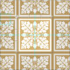 Arts and Crafts inspired tile patterns in a palette of colours typical of the period, with customisable monogram.