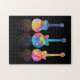 Contemporary, colourful GUITAR DESIGN in a sixties inspired, retro pop art style. Three string instruments of the rock, jazz and pop persuasion for musicians, guitarists and music lovers.