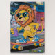 León Mark, sobre su patineta. Feliz tomando su bebida, versión cómic.