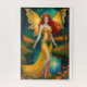 A beautiful fairy standing in a vibrant, colourful forest setting. wears a long, flowing yellow dress with green and gold accents that resemble leaves or petals, suggesting inspiration from nature.