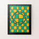 Optical illusion of a ball on a yellow and green chequerboard.