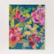 Hibiscus flowers in shades of pinks and reds, with green leaves, against a jade green background. From original silk painting by Susan Lilly. (Lilikai)