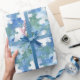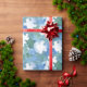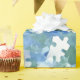 Watercolor painting in blue and green with white silhouette of jigsaw puzzle pieces.