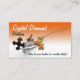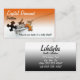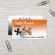 The business card design displays a fork with jigsaw puzzle pieces between the tines on the front. The template front offers the name title and slogan/motto and the back provides other information. An orange gradient background sits on the front and black gradient on the back. Personalise the text fields, remove unwanted text or click the customise to change the typeface style, size, and colour. The concept for this card can serve for dieticians, nutritionists, project managers, career counsellors and possibly your career.