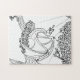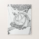 Dragon is greeting the sun's rays. Black and white drawing of winged dragon sitting in a nest on branch of a tree with branches overhead. His wings are spread to catch the early morning rays of the sun. Three times the fun: 1. put the puzzle together. 2. Using felt-tip or gel pens, paints, crayons, or other medium, you colour with your own artistic style. 3. Take apart and put together the coloured image.