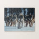 Game puzzle shown with a photo print of a group of wolves in Yellowstone Park.