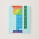 Puzzle featuring periodic table of the elements, with each element group marked in rainbow colours.