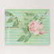 Puzzles Pink Rose Floral Green & White Stripe