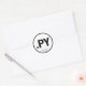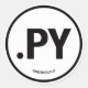 .PY Sticker, round/matte. Black design on white.