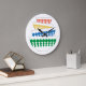 The clock is made of high-quality acrylic and has a clear, glossy finish. The image of the Pyrex bowls is printed on the acrylic using a special technique that ensures that the colours are vibrant and long-lasting. The clock is also lightweight and easy to hang on the wall.