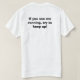Front: Pyrotechnics Technician Back: If you see me running, try to keep up! A little dark humour. Funny and effective at the beach and parties, especially around Independence Day.