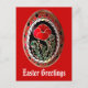 A pysanka is a Ukrainian Easter egg, decorated using wax and dye, sort of like batik. The word comes from the verb pysaty, "to write", as the designs are not painted on, but written with beeswax, and then the egg dyed. This beautiful pysanka card makes a unique Easter greeting. Add your own text to personalise it.
