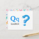 "Letter Q is for Question" in our Alphabet Flash Card set. Get all 26 letters of the alphabet! A double-sided postcard that is great for memory games and teaching, geared for education, schools, teachers and homeschoolers for kindergarten and babies. All text is editable if you need to customise.
