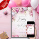Festive Shades of Magenta peony flowers and Balloons for a festive girly birthday celebration invitation, accented with handwritten style calligraphy. Use our easy to customise template to personalise with your details - a Stunning Design © by WhimsicalArtwork™