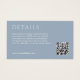 These wedding details enclosure / insert card feature a contemporary set of fonts in ivory white against a dusty blue background. Included are a QR code and couple monogram at the back.