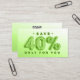 QR CODE 40%OFF DISCOUNT PROMOTIONAL GREEN BUSINESS CARD