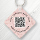 Double sided keychain with your QR code and custom text on a light blush pink marble background. Change fonts and font colours, move and resize elements with the design tool.