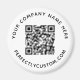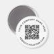 Round magnets with your QR code and custom text. Change fonts and colours, move and resize elements with the design tool.