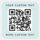 Square, light aqua blue stickers with your QR code and custom text, one line at the top and one at the bottom. Change fonts and colours, move and resize elements with the design tool. Follow us on Facebook: @businessstationery or Instagram: @business.perfectlycustom for more products, news, sales and more.