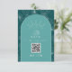 QR Code Arch Tropical Palm Teal Wedding RSVP Card