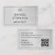A sleek and modern business card design crafted for architects and design professionals. Featuring a brushed silver metallic look with bold monogram initials, clean typography, and a built-in QR code, this design conveys sophistication, precision, and professionalism. Perfect for architects who want to present a polished brand identity while giving clients instant access to portfolios, contact details, or project links.