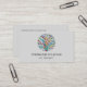 This art therapist's business card is decorated with a colourful mosaic tree of life design on a pale grey background.