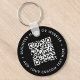 A simple custom black QR code keychain template in a modern minimalist style which can be easily updated with your QR code, business name or website and custom text, eg. scan me to... #QRcode #keychain #business
