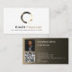 A modern, simple and elegant business card design that features a black and gold circle and a template for a QR code. This photo business card is perfect for credit professionals in the financial industry: credit advisors and consultants, credit repair specialists etc.