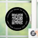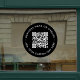 A simple custom black QR code vinyl window cling decal template in a modern minimalist style which can be easily updated with your QR code, business name or website and custom text, eg. scan me to...