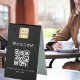 A classic black background, white coloured text. With the text: Welcome, and Please scant to view our menu and order. Personalise and add your business logo, QR code and text.