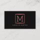 This business card features a modern elegant faux rose gold monogram design on a black background and QR code on the back. Personalise it with your own text.