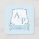 QR Code Blue And White Monogram Crest Wedding RSVP Enclosure Card