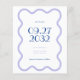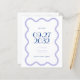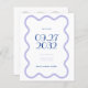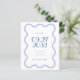 This wedding save the date card is feature a wavy border. It uses calm colours like lavender inspired by lavender fields. The fun and stylish fonts add a touch of elegance, and word at the centre are highlighted in bright blue for a fun pop of colour and uses a bigger font size. Furthermore, photo and qr code at the back can be personalised.