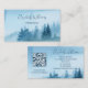 Simple business card with a custom name in an elegant handwritten font on a blue watercolor landscape with trees. Templates for your name, title, phone number, mail and website address, QR-code to your website or social media account.